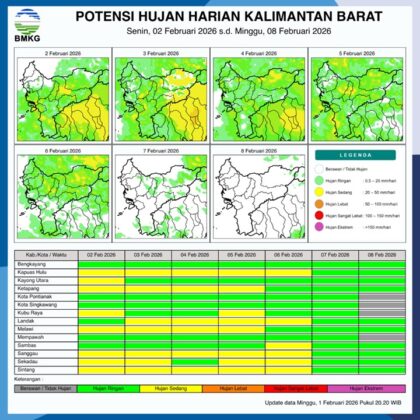 Info Warga Kalbar Lokal BMKG Kalbar: Potensi Hujan Harian di Kalimantan Barat Hingga 8 Februari 2026 Februari 2, 2026 •