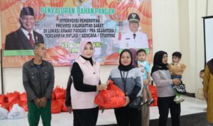 SINGKAWANG – Pj Gubernur Kalbar, dr. Harisson, M.Kes. didampingi Ketua Tim Penggerak PKK Provinsi Kalimantan Barat Ny. Windy Prihastari Harisson, S.STP., M.Si., bersama Pj. Wali Kota Singkawang Drs. Sumastro, M.Si., menyerahkan Secara Simbolis Penyerahan Bantuan Pangan Kegiatan Intervensi Pengendalian Kerawanan Pangan Tahun 2025 Bertempat di Aula Kantor Camat Singkawang Selatan dan Kelurahan Kuala Kota Singkawang, Selasa (28/1/2025).