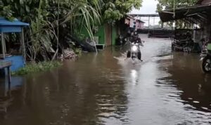 KUBU RAYA – Empat desa di Kecamatan Teluk Pakedai, Kabupaten Kubu Raya, terendam banjir rob akibat pasang air laut yang disertai peningkatan curah hujan.