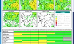 PONTIANAK – Badan Meteorologi, Klimatologi, dan Geofisika (BMKG) Stasiun Meteorologi Kelas I Supadio Pontianak kembali merilis potensi hujan harian bagi wilayah Kalimantan Barat dalam beberapa hari ke depan, termasuk hingga periode 28 Februari 2026. Informasi tersebut dikeluarkan sebagai bagian dari pemantauan cuaca harian untuk memberikan gambaran kondisi atmosfer yang berpengaruh pada aktivitas masyarakat dan potensi dampaknya.