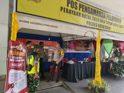 Kapolres Kubu Raya Cek Kesiapsiagaan Personel Pos Pelayanan Ops Lilin Kapuas 2025 di Gaia Mall Desember 24, 2025 • KUBU RAYA – Komitmen Polres Kubu Raya dalam menjamin keamanan dan kenyamanan masyarakat selama perayaan...