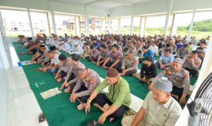 KUBU RAYA – Masjid Baitul Mukmin di kompleks Polres Kubu Raya menggelar salat Jumat perdana pada (7/2). Kegiatan ini menandai dimulainya penggunaan masjid tersebut untuk ibadah rutin.