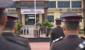 Upacara tersebut dipimpin langsung oleh Kapolres Kubu Raya, AKBP Kadek Ary Mahardika, diikuti oleh Wakapolres Kubu Raya, Kompol Hilman Malaini, para PJU Polres, Kapolsek jajaran, serta seluruh personel Polres Kubu Raya.
