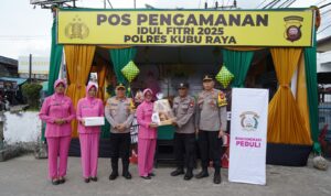KUBU RAYA – Kapolres Kubu Raya, AKBP Wahyu Jati Wibowo, S.I.K., S.H., M.H., melakukan pengecekan Pos Pengamanan serta memberikan bingkisan kepada personel yang bertugas dalam Operasi Kepolisian Terpusat “Ketupat Kapuas 2025” pada Minggu (30/3). Kegiatan ini berlangsung di beberapa titik strategis, yakni Pos Terpadu Bandara Supadio, Pos Pengamanan Gaia Bumi Raya City Mall, Pos Pengamanan Desa Parit Baru, dan Pos Pelayanan Terminal Tipe A ALBN Sungai Ambawang.