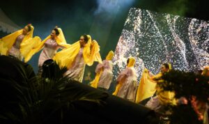 “Klimaks pertunjukan menampilkan rajutan gerak yang menyatu dalam simbol Kalengkang, yang melambangkan keterikatan antara masa lalu, masa kini, dan masa depan,” jelasnya.