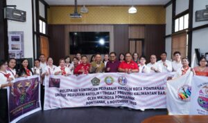 PONTIANAK – Kontingen Pesta Paduan Suara Gerejani (Pesparani) Katolik Kota Pontianak resmi dilepas Wali Kota Pontianak Edi Rusdi Kamtono di Aula A Muis Amin Kantor Bepperida Kota Pontianak, Kamis (6/11/2025). Kontingen ini akan mengikuti Pesparani Katolik I tingkat Provinsi Kalimantan Barat (Kalbar).